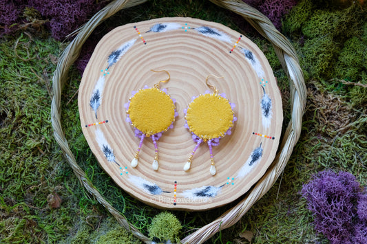 Picasso Yellow and Red Deer Antler Earring and Necklace Set