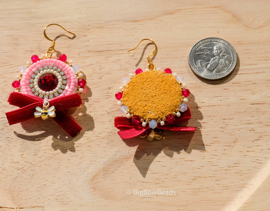 Maroon Bow and Bee Earrings