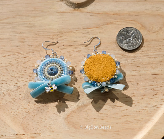 Light Blue Bow and Bee Earrings