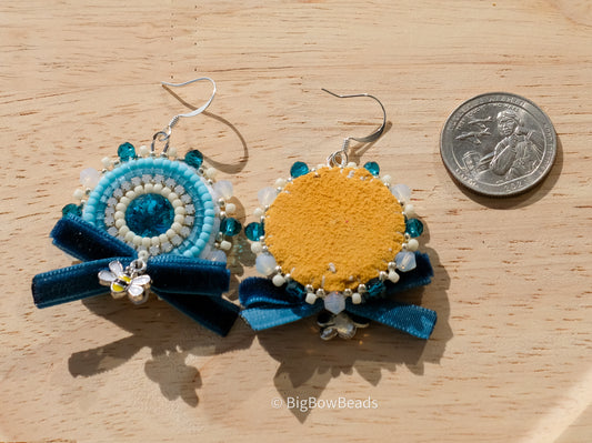 Teal Bow and Bee Earrings