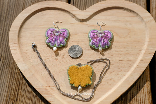 Purple Bow Earring and Necklace Set