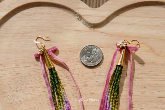 Sold outPinkish purple Bow Fringe Earrings
