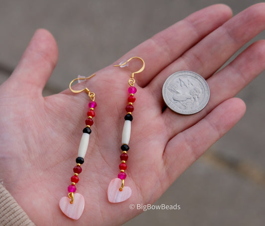 Pink Heart Abalone Earrings