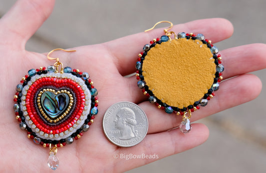 Red Heart Abalone Earrings