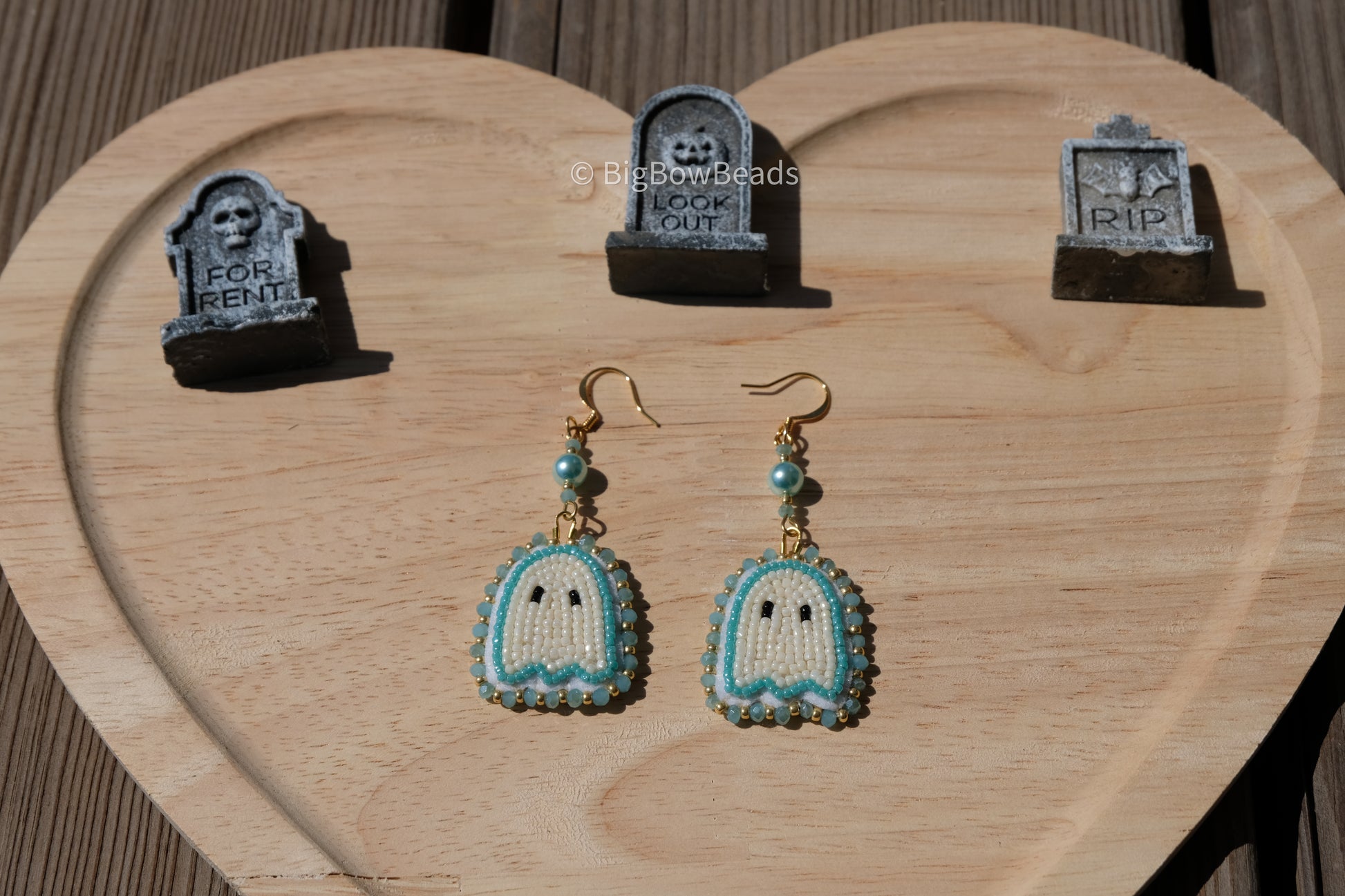 Made with size 15 tricut Japanese beads and edged in 2mm rondelles and size 11 japanese beads It is backed in deer hide and hang from a gold plated hypoallergenic hook with a faux pearl blue bead.